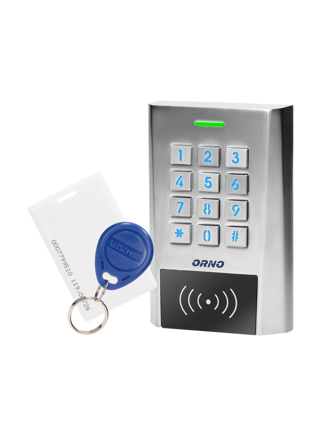 Elegancki zamek szyfrowy w szerokiej aluminiowej obudowie łączy w sobie funkcje cyfrowej klawiatury kontroli dostępu oraz czytnika kart i breloków zbliżeniowych. To nowoczesne urządzenie współpracuje z elektromagnetycznymi zamkami, w których stosuje się system kontroli dostępu. Może również sterować innymi urządzeniami elektrycznymi lub alarmowymi. Zamek ma 2 wyjścia przekaźnikowe oraz czytnik kart i breloków zbliżeniowych. Uprawnione osoby mogą wejść do pomieszczenia lub budynku po odczytaniu karty lub po wprowadzeniu kodu dostępu. Nieulotna pamięć EPROM zapamiętuje zapisane kody i parametry w pamięci przy zaniku napięcia. Klawiatura zamka jest podświetlana, dlatego wprowadzanie kodów po zmroku nie stanowi problemu. Jej wytrzymała obudowa sprawia, że jest wyjątkowo odporna na zmienne warunki atmosferyczne. Zamek nadaje się do montażu natynkowego. Świecące diody LED sygnalizują stan pracy szyfratora.